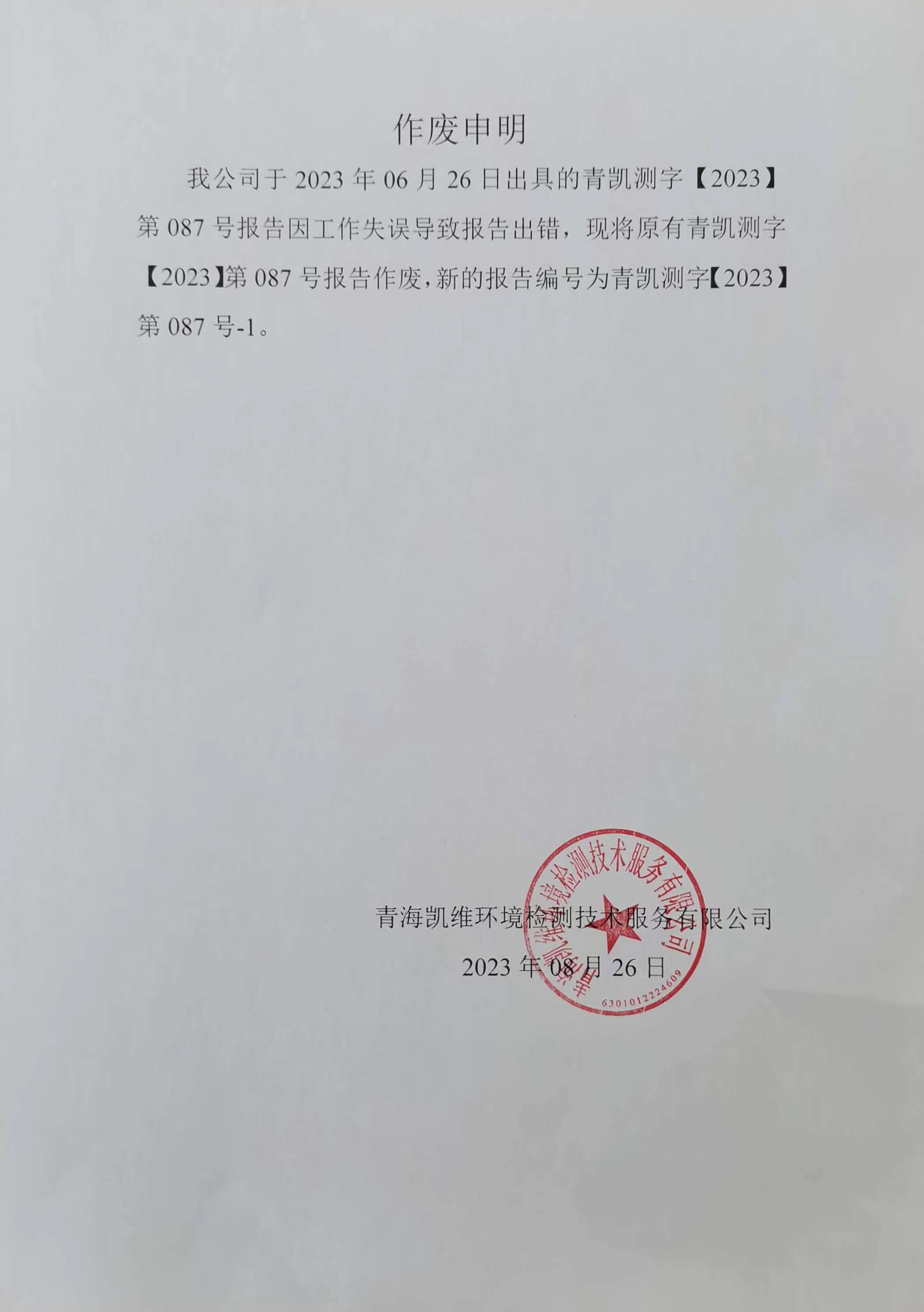 報(bào)告作廢聲明